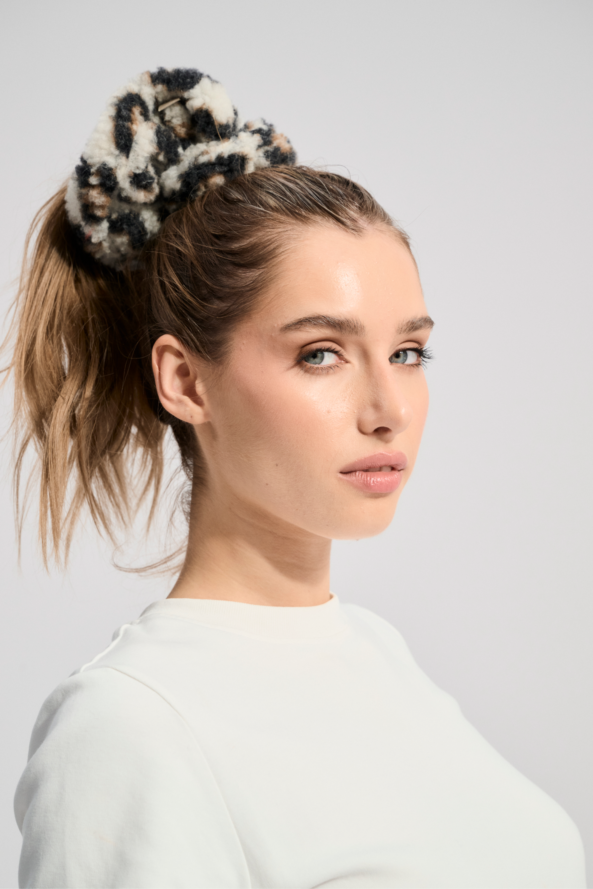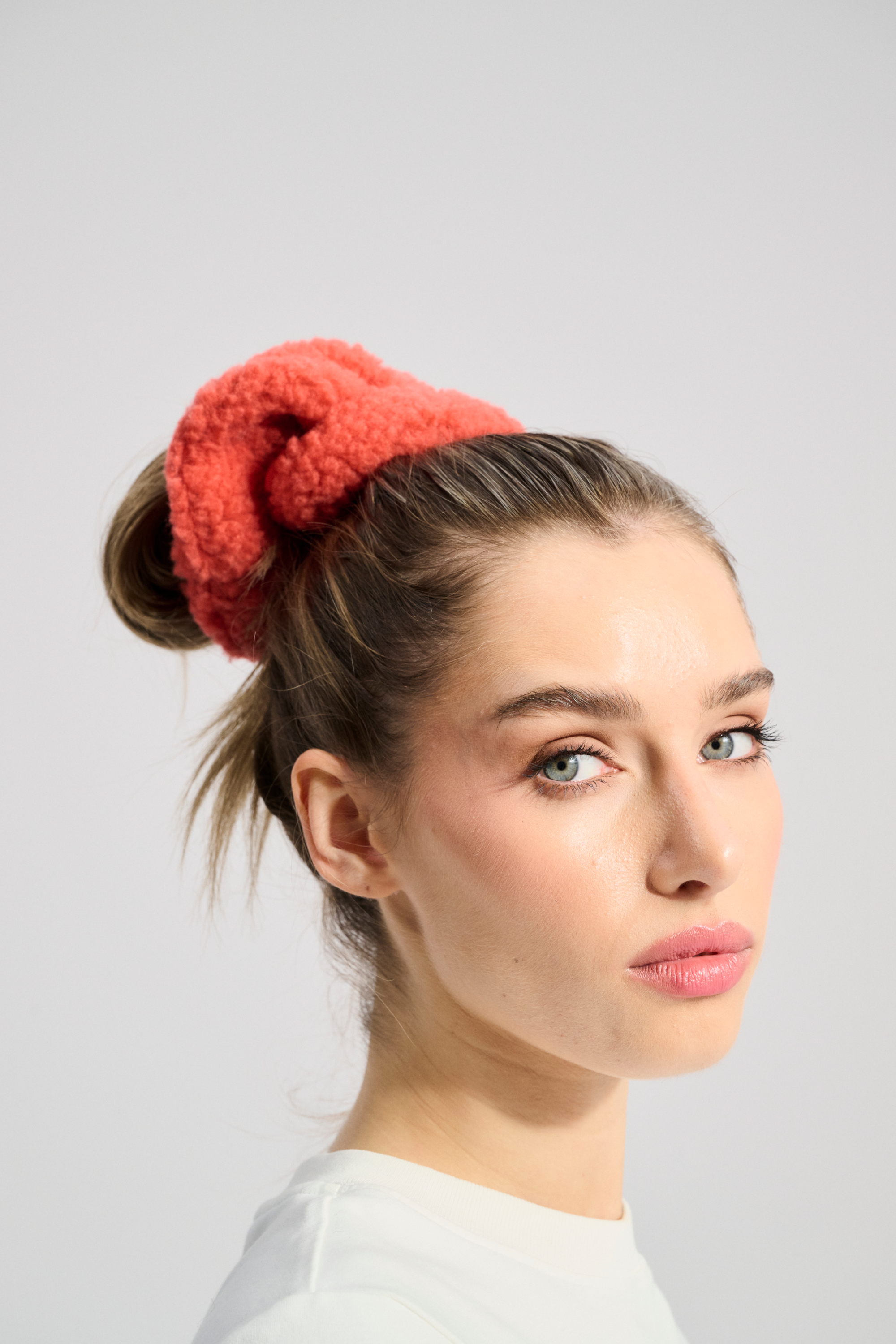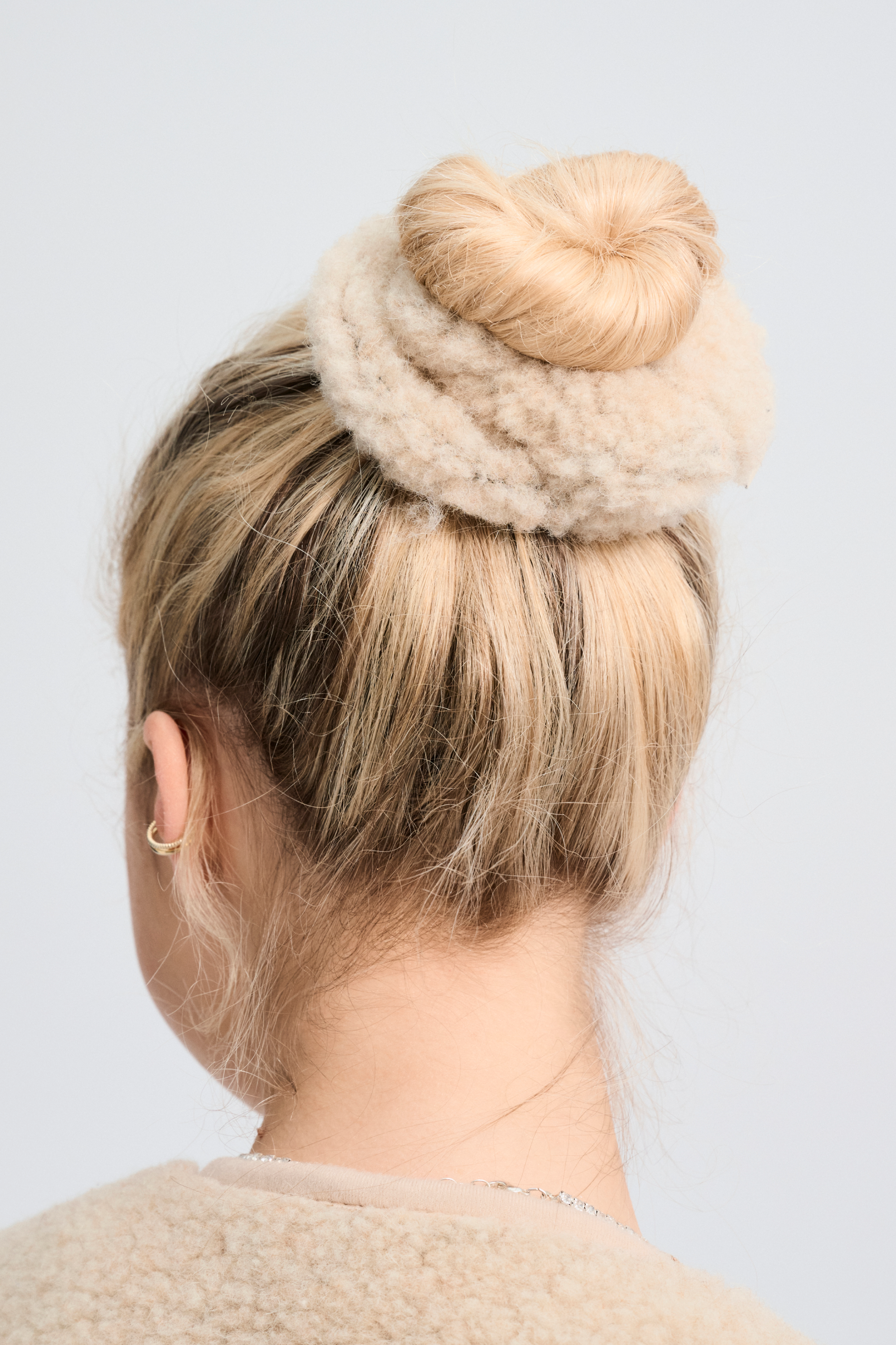 Wełniana gumka do włosów typu scrunchie.