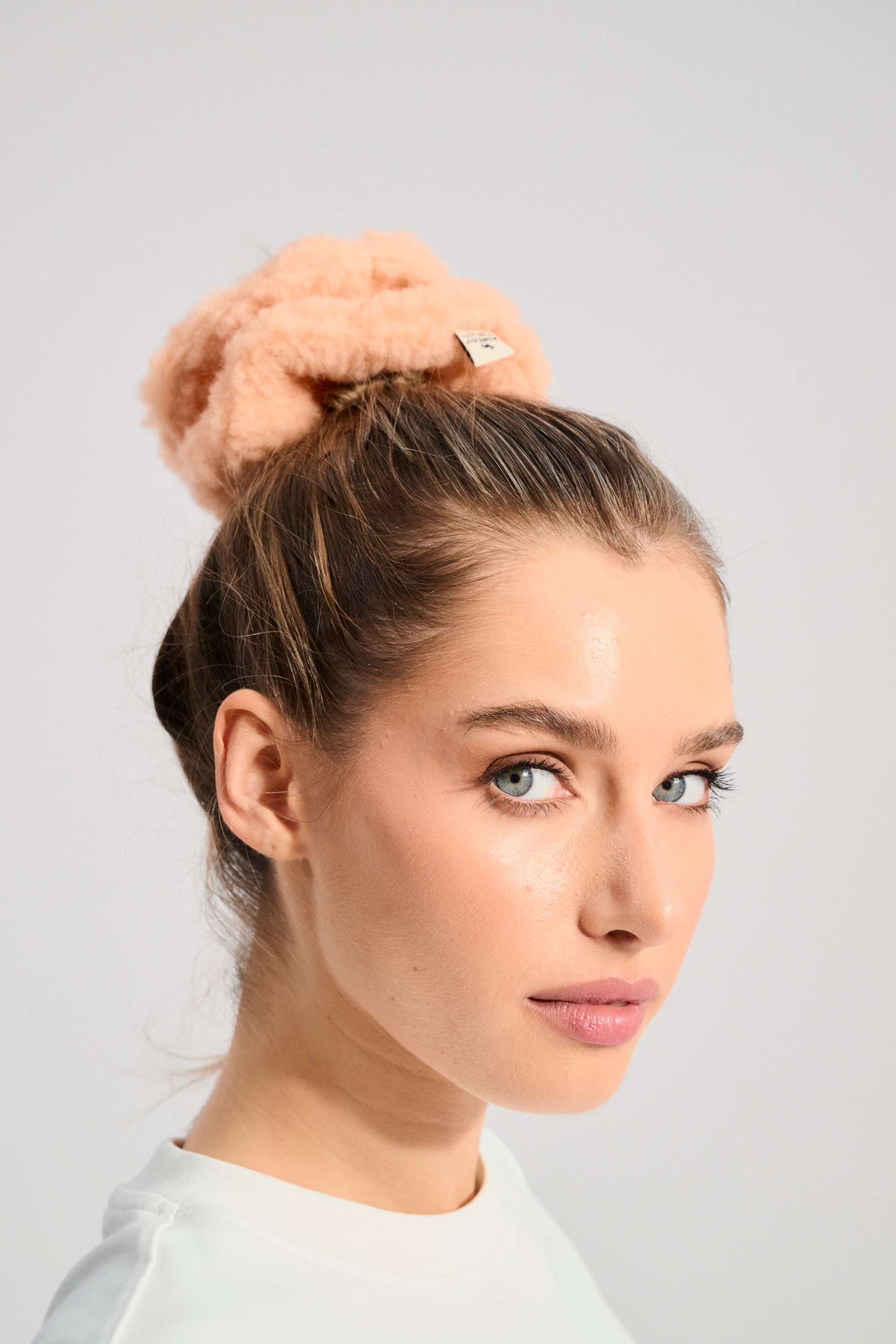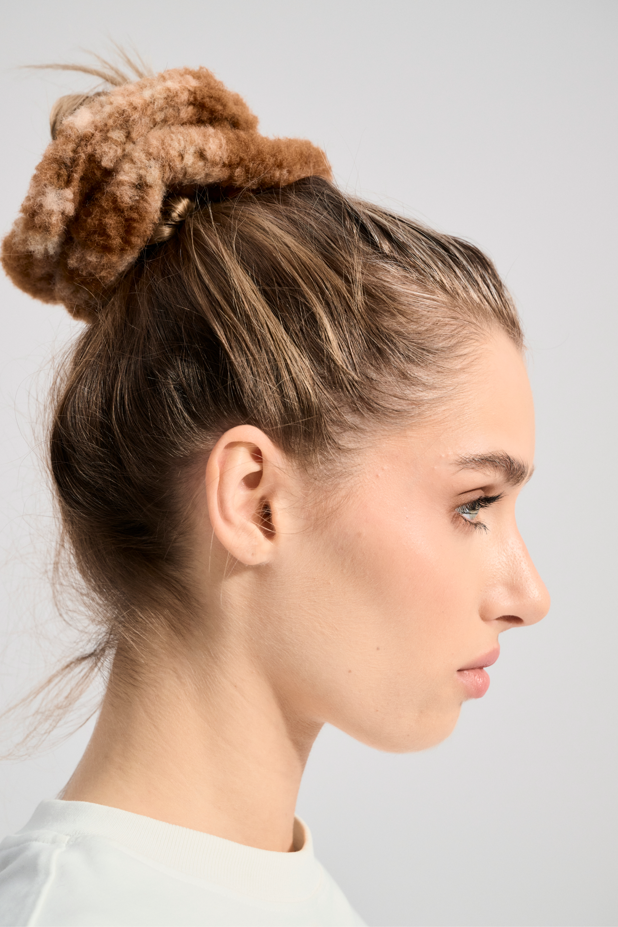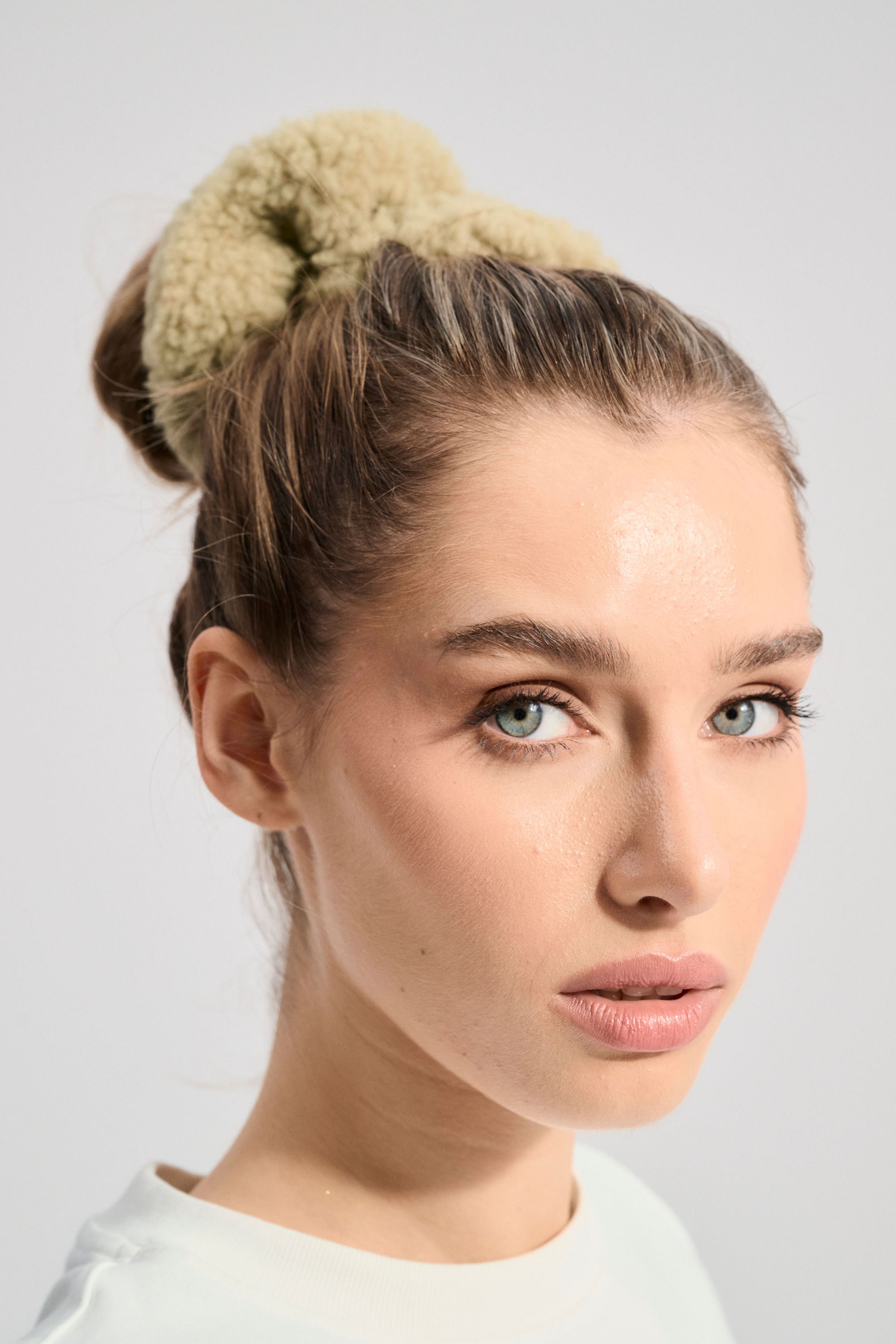Wełniana gumka do włosów typu scrunchie.