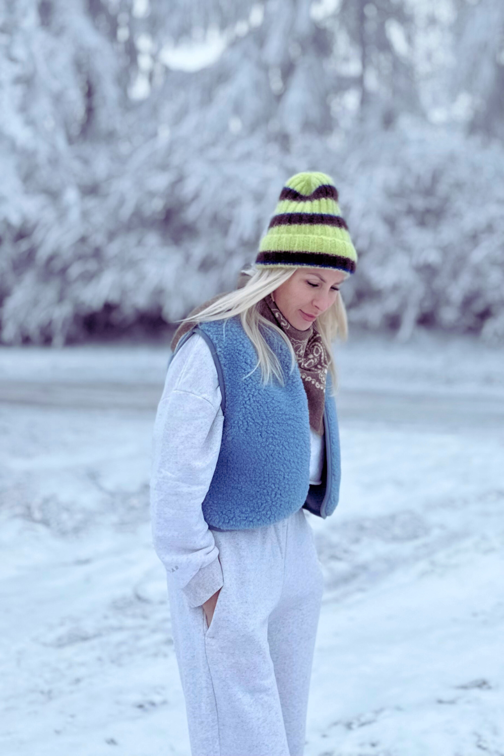 To wełna o strukturze pętelki w połączeniu z runem, dla uzyskania niezwykle charakterystycznej i dekoracyjnej tekstury. Surowiec układa się w trójwymiarowy wzór. Sprawdzi się idealnie w cieplejsze dni zimy w połączeniu z grubszą warstwą ubrań oraz w porach przejściowych wiosny czy lata.
