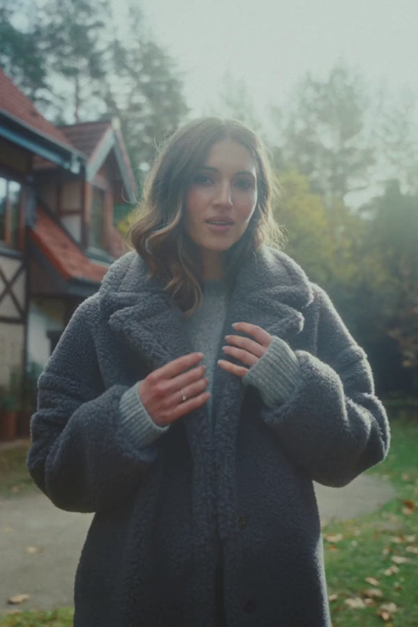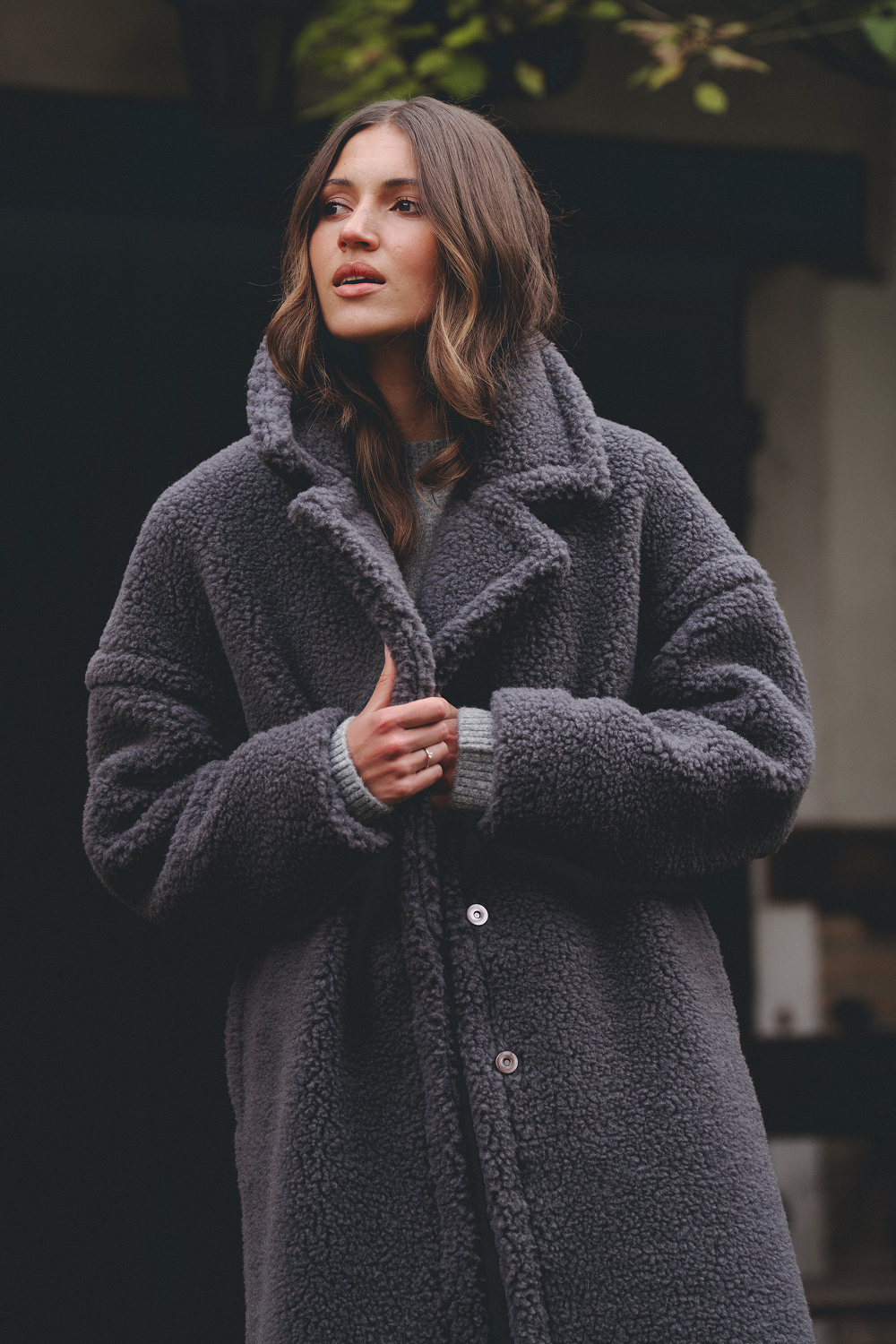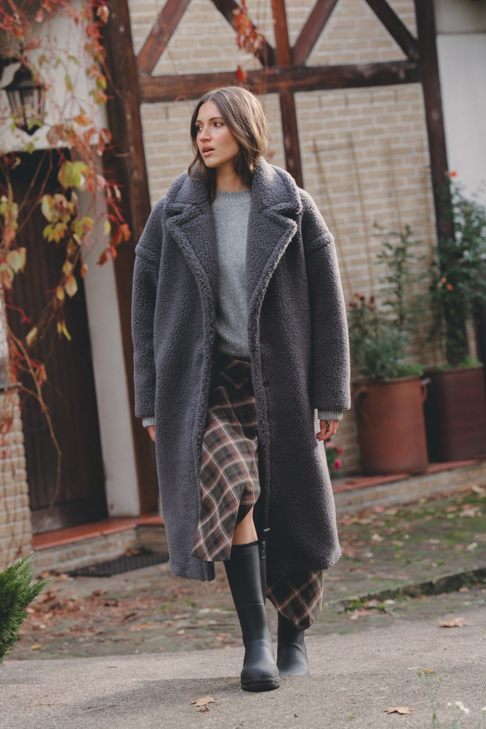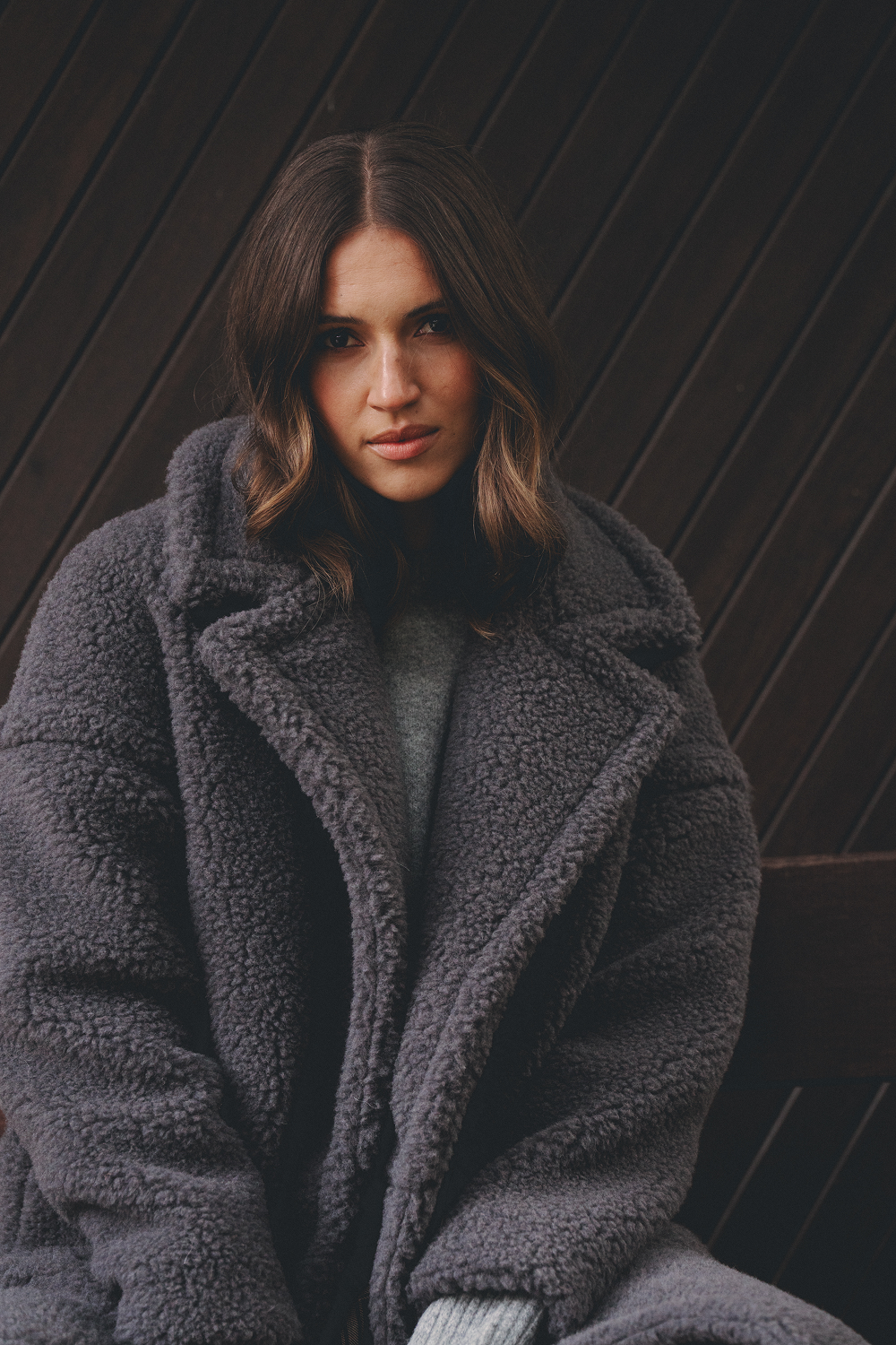 TEDDY MAX to nasza nowa wersja klasycznego płaszcza w stylu teddy, wykonana z miękkiej, lekkiej i ciepłej wełny baranizowanej. Model posiada duży kołnierz oraz charakterystyczne przeszycia ramion, pleców oraz klap. Długość za kolano, zapięcie jednorzędowe z dyskretnymi, magnetycznymi napami.