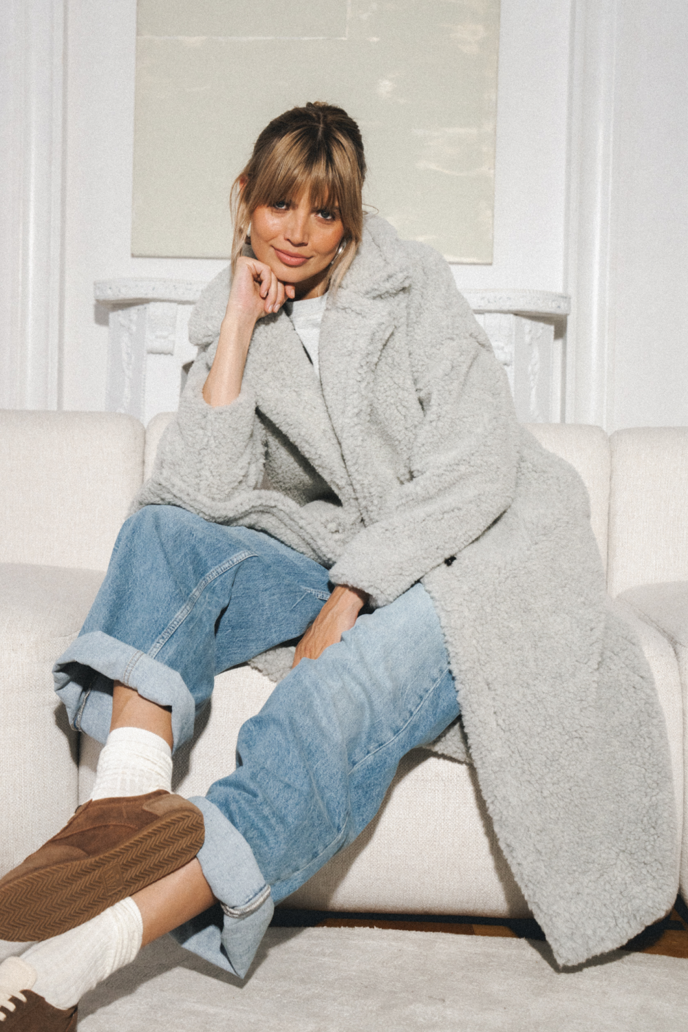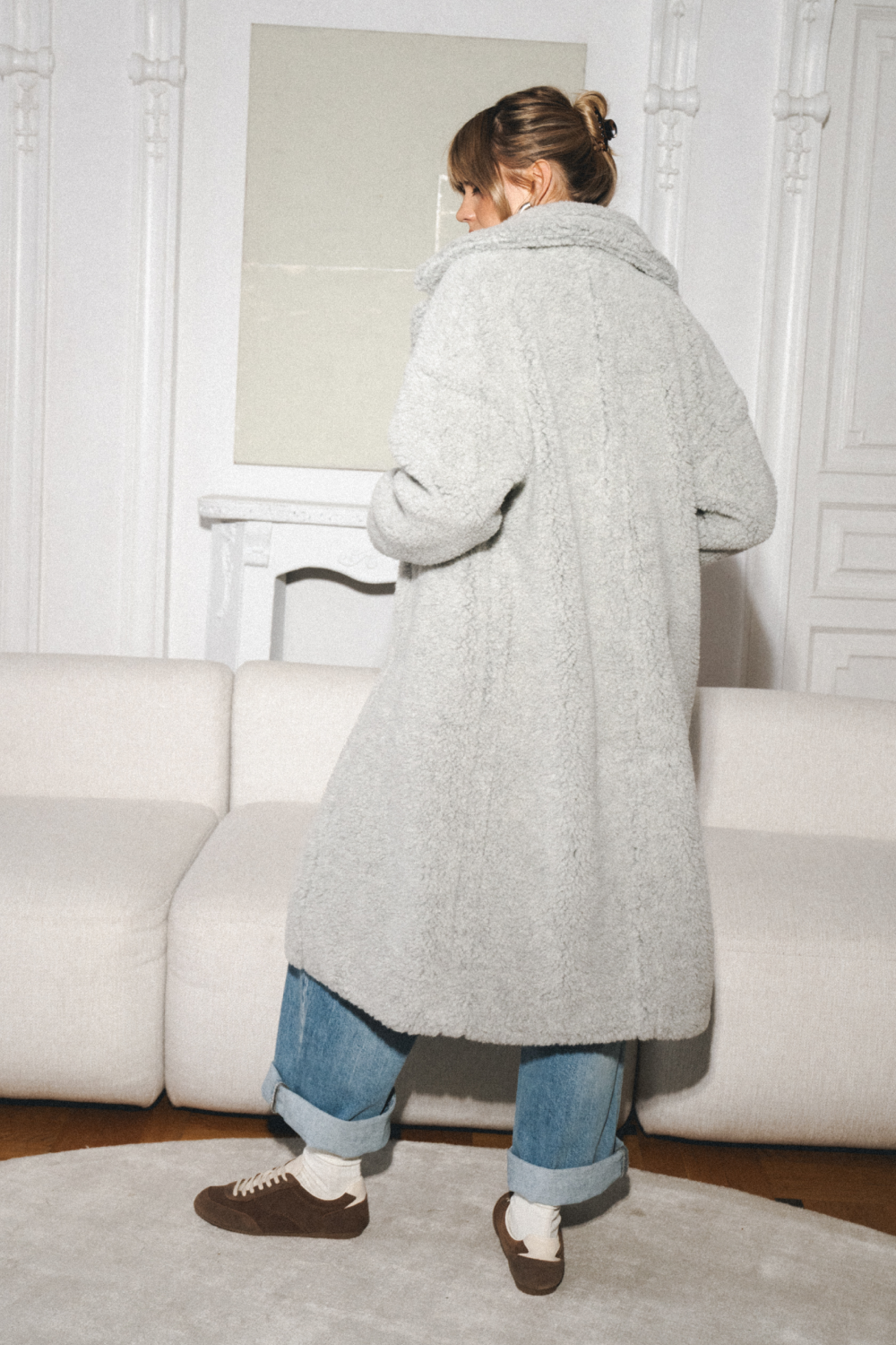 TEDDY MAX to nasza nowa wersja klasycznego płaszcza w stylu teddy, wykonana z miękkiej, lekkiej i ciepłej wełny baranizowanej. Model posiada duży kołnierz oraz charakterystyczne przeszycia ramion, pleców oraz klap. Długość za kolano, zapięcie jednorzędowe z dyskretnymi, magnetycznymi napami.